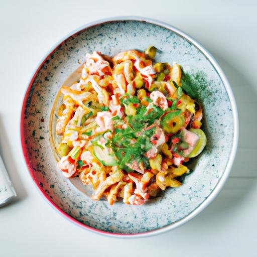 En enkel og lækker pastasalat, der kan laves hurtigt og er perfekt som frokost eller tilbehør.Forberedelsestid: 20 minutter