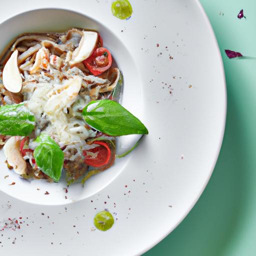 6. Server portionerne med revet parmesanost og frisk basilikum på toppen.