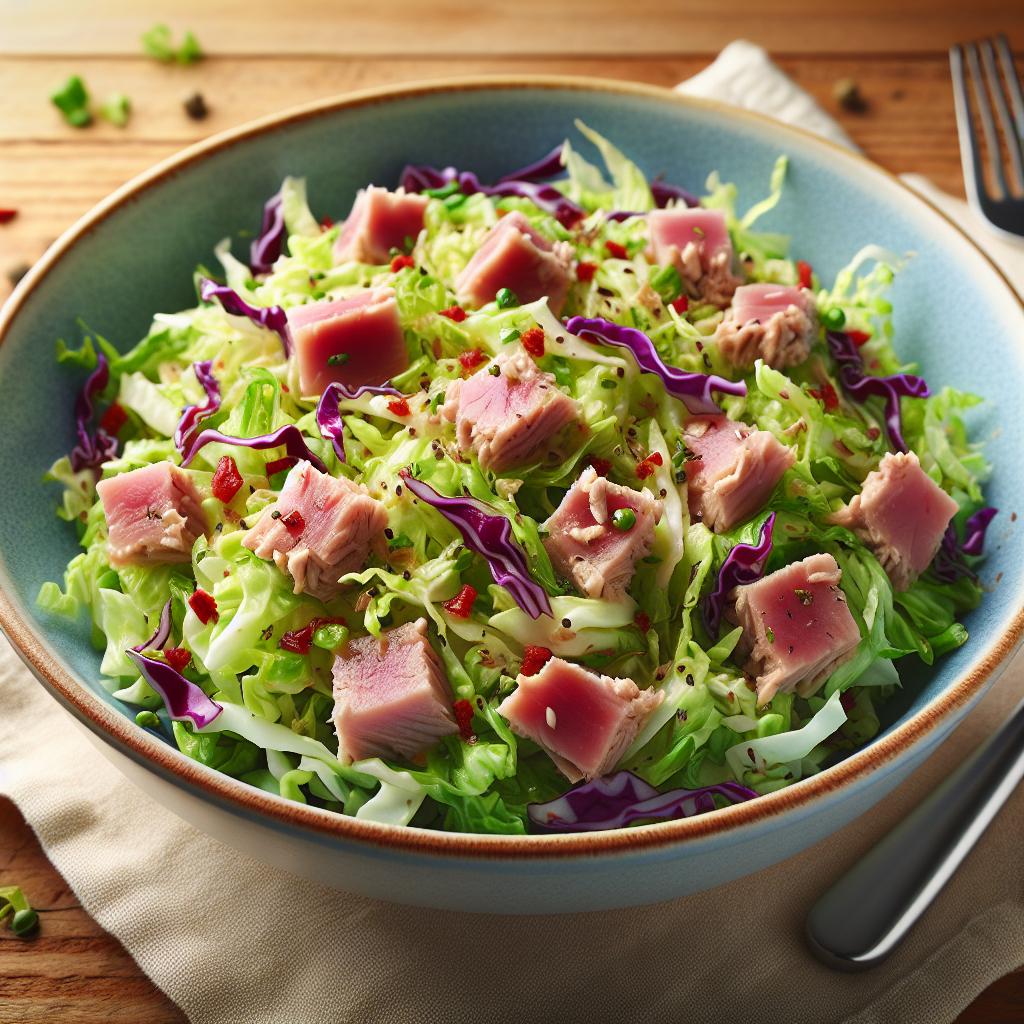 Denne friske kål- og tunfiskesalat er let og hurtig at lave. Den er perfekt som en let frokost eller som tilbehør til middagen. Forberedelsestid: 15 minutter