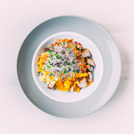 2. Bland fuldkornshvedemelet og havregrynene i en skål.