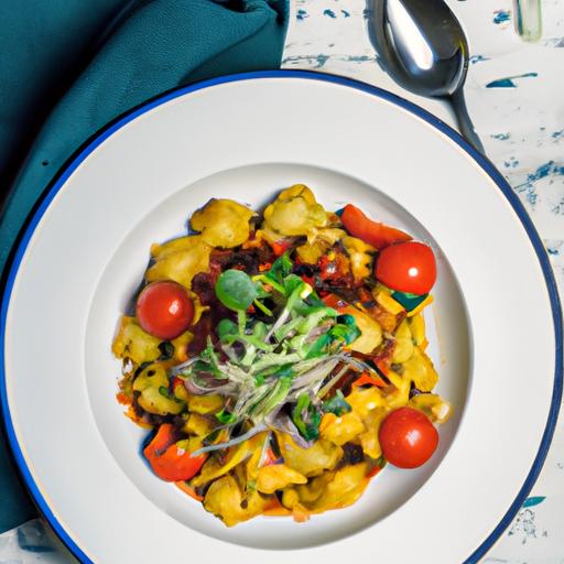 7. Fjern laurbærbladene og tilsæt friske urter inden servering.