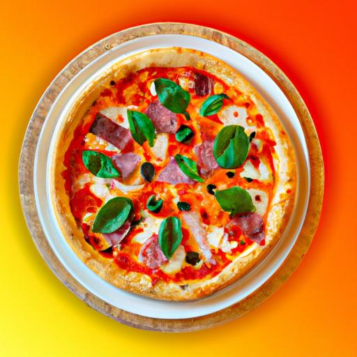8. Tag pizzaen ud af ovnen, pynt med frisk basilikum og server straks.