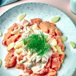 3. Bland fløde, mælk, knust hvidløg, salt, sort peber og urter i en skål.