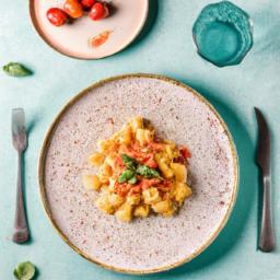 4. Tilsæt tomatpuré, sirup og fløde. Rør godt rundt.