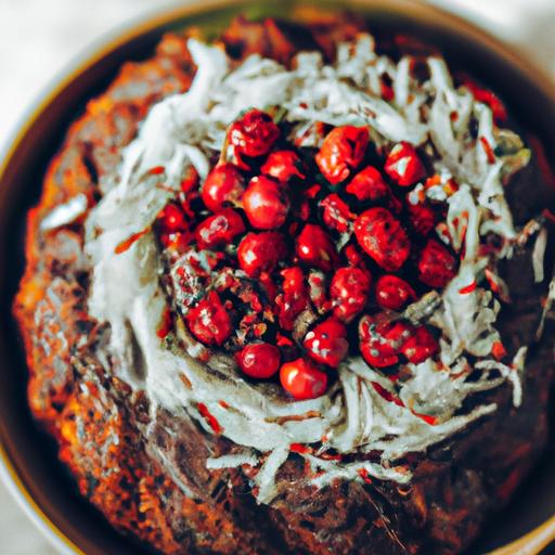 7. Pynt kagen med chokoladechips og friske bær inden servering.