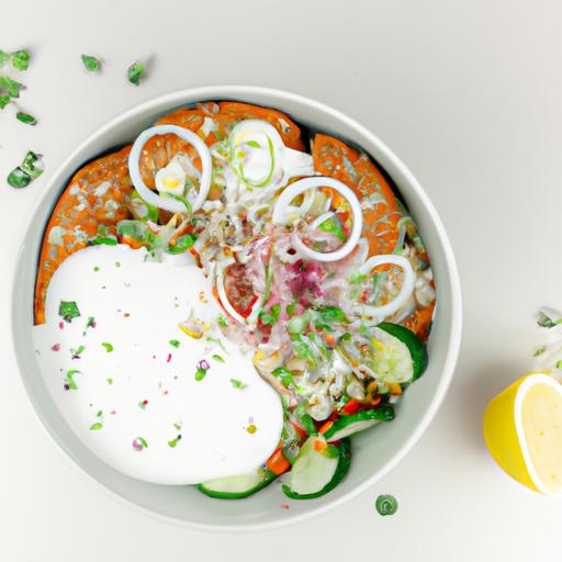 8. Tilsæt olivenolie, citronsaft, salt og peber til salaten og rør godt rundt.