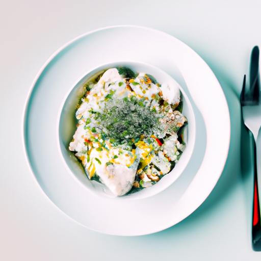 7. Bland perlespelten, svampe, revet ost, hakket persille, salt og peber i.