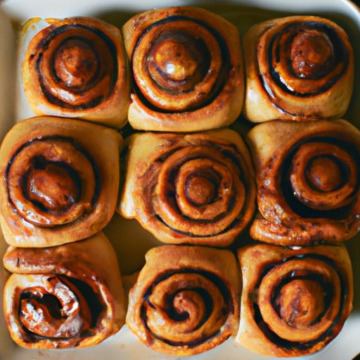 10. Skær rullen i 16-20 skiver og læg dem i en bageform (ca. 20x30 cm) med snitfladen opad. Læg dem med lidt afstand mellem.