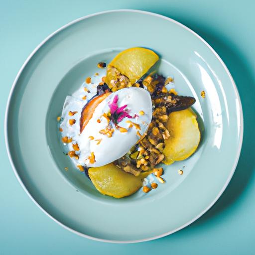 4. Hæld den vanilje-kokosdressing over frugterne.