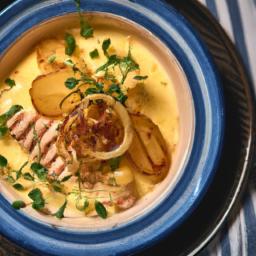 6. Server varmt med eksempelvis kartofler eller salat.